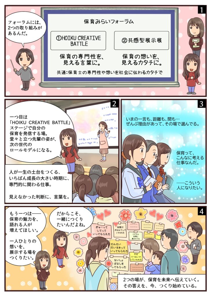 まず最初に言っておきたいのは、「保育みらいフォーラム」と「HOIKU CREATIVE BATTLE」って、別物なんだけど、別物じゃないっていう……(笑)